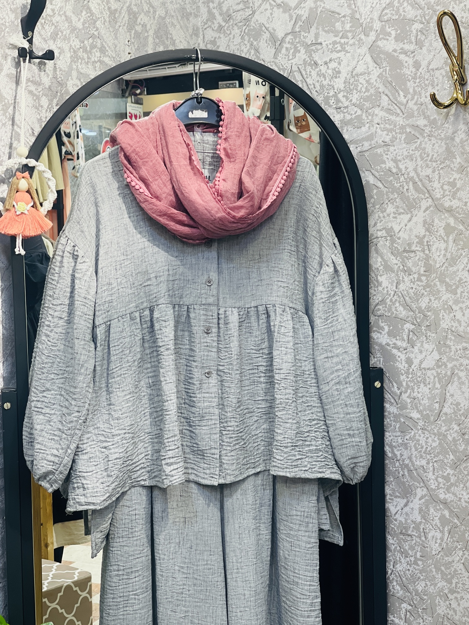 ست شومیز و شلوار با شومیز عروسکی تک رنگ طوسی رنگ