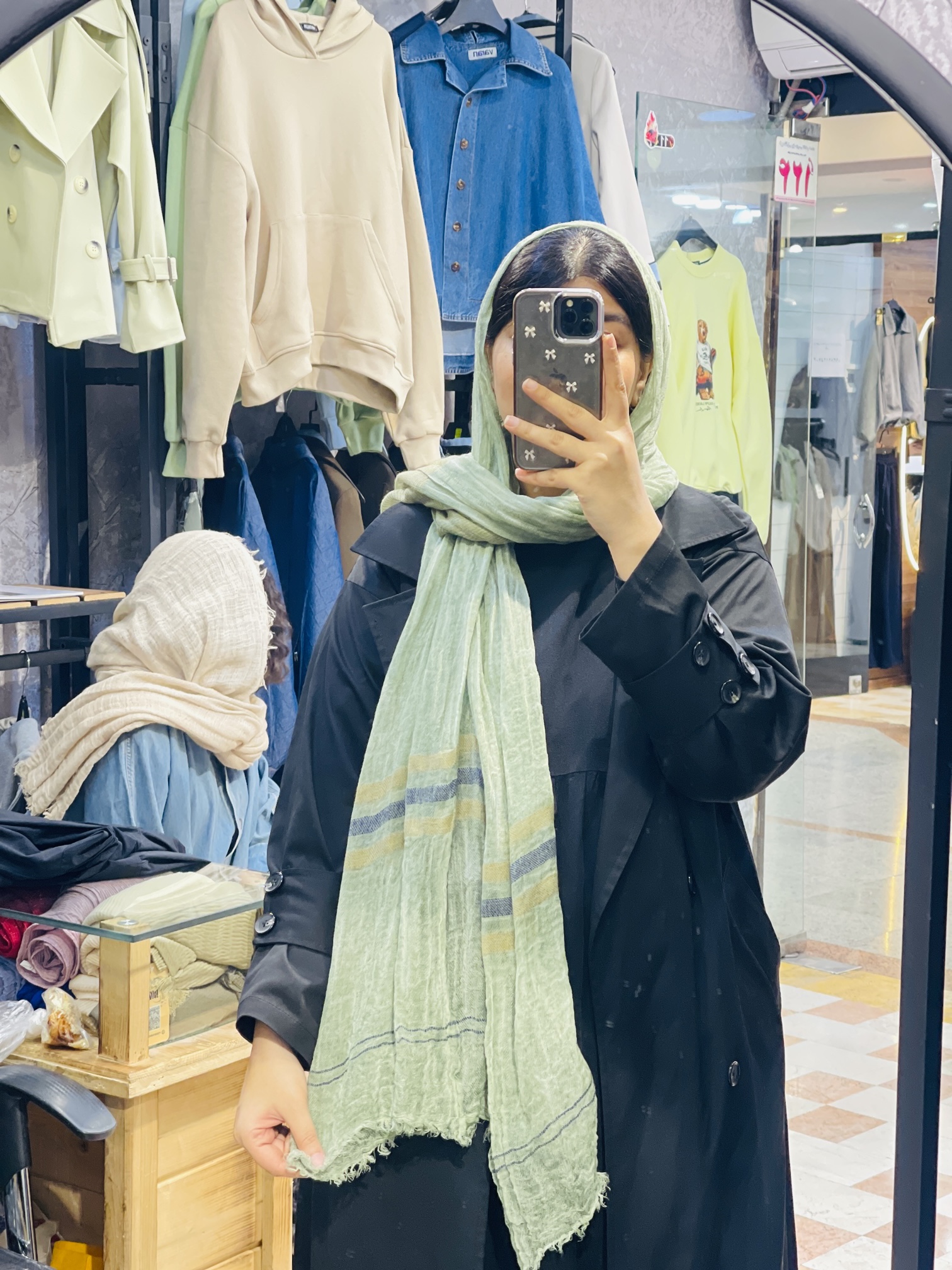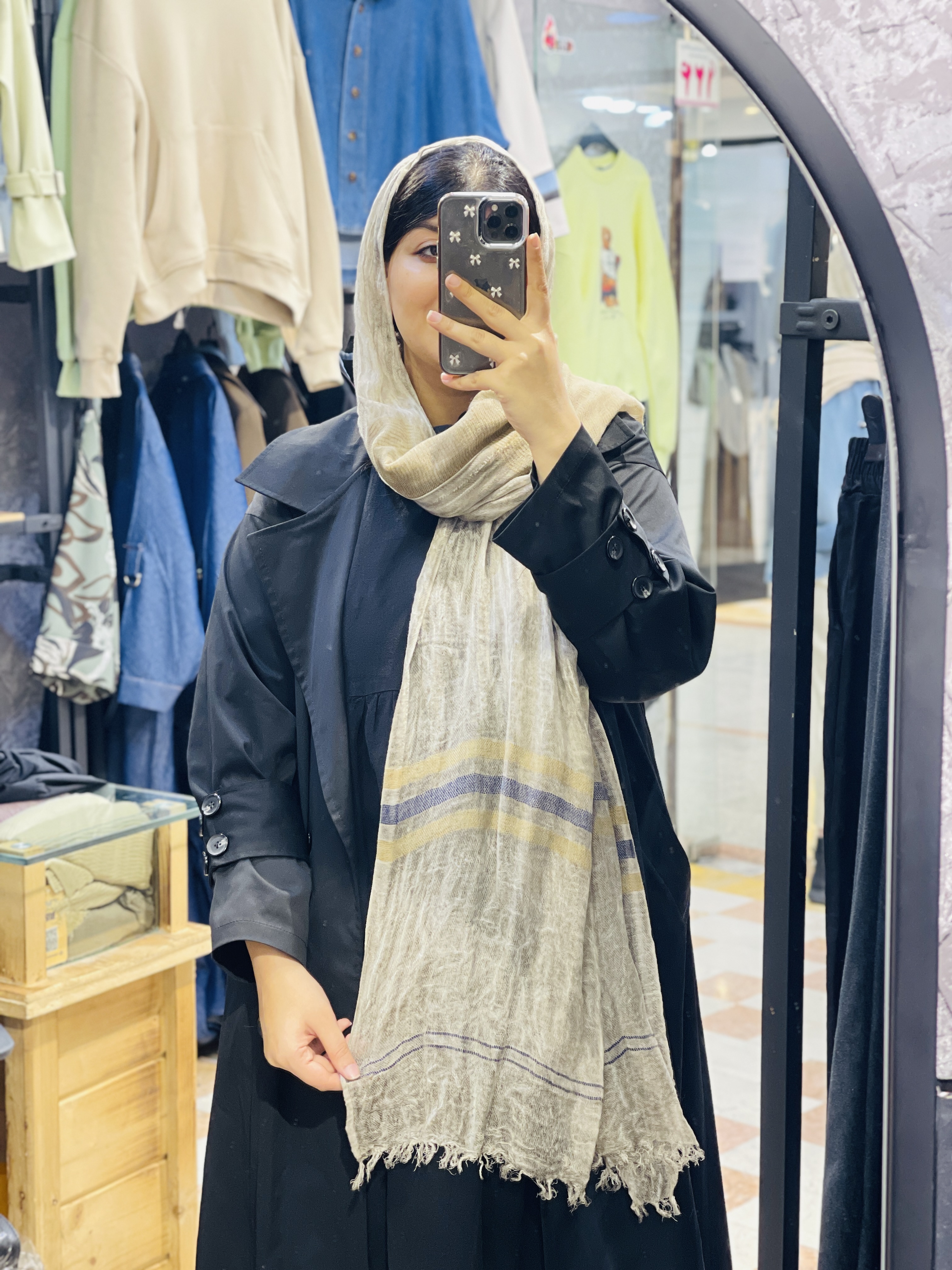 شال حریر وارداتی دستک خطدار