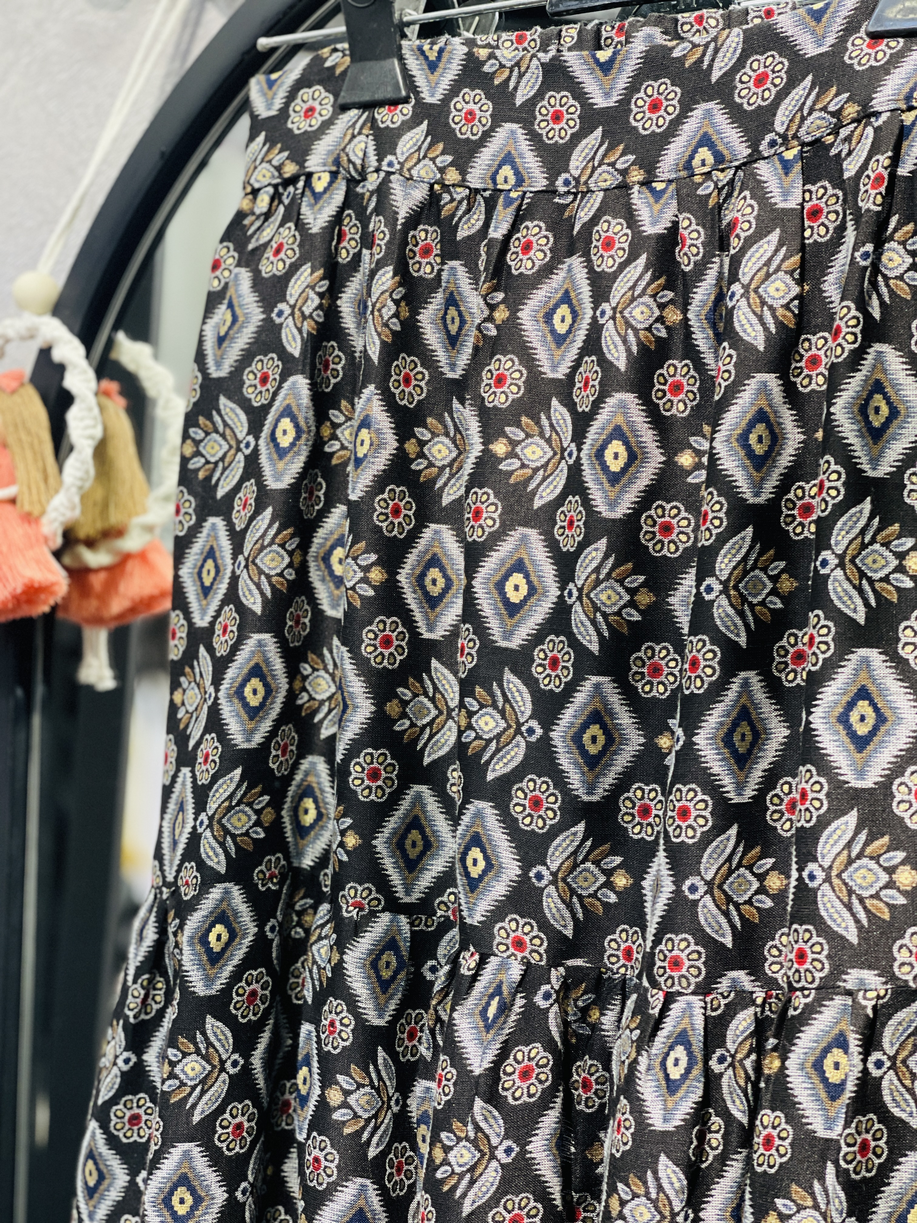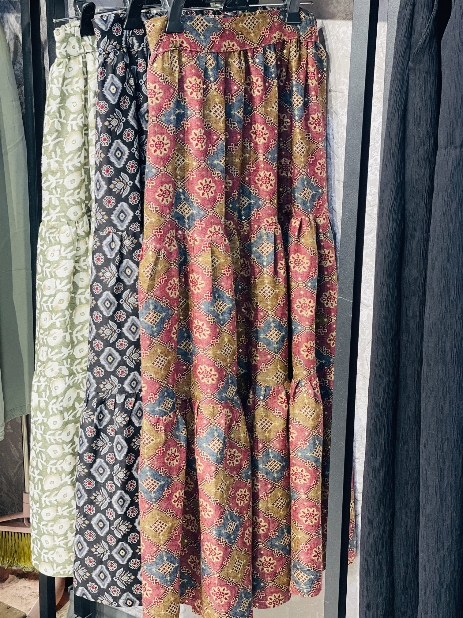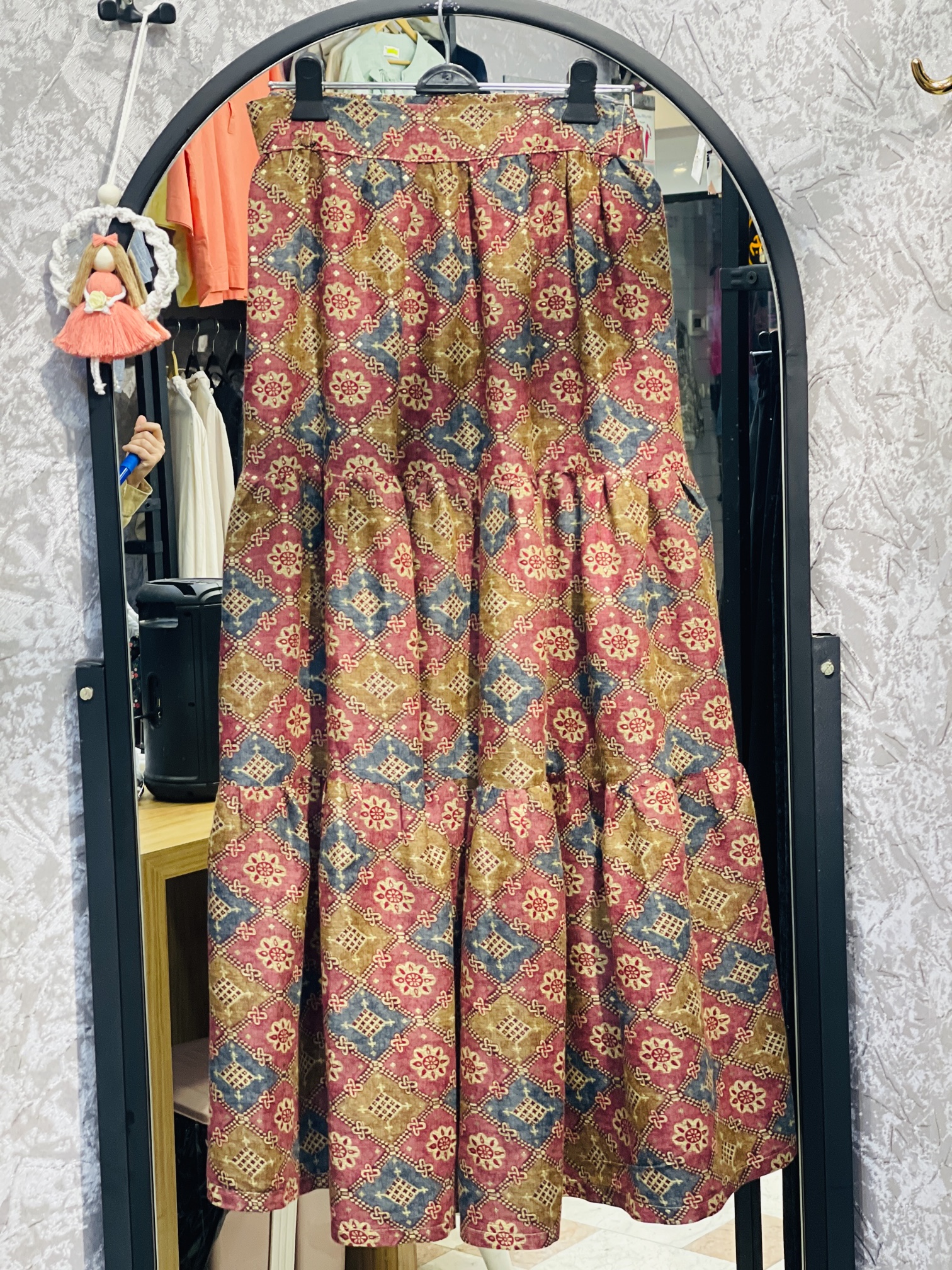 دامن پتینه هندی طلاکوب با جنس وارداتی که سه چین دارد و بسیار خوش فرم است