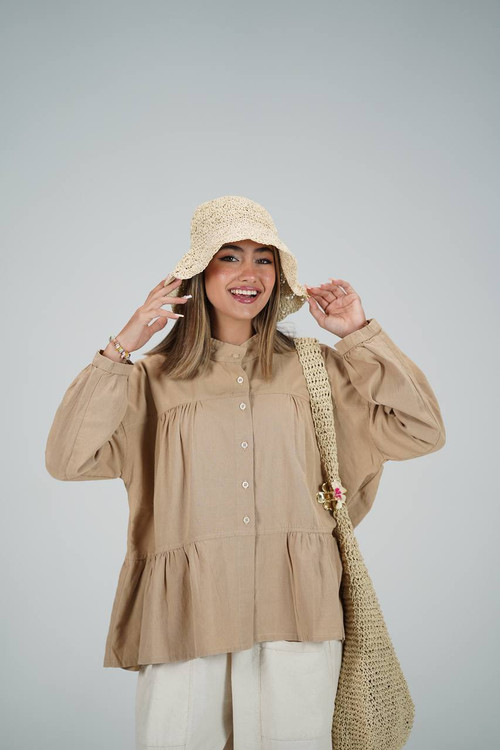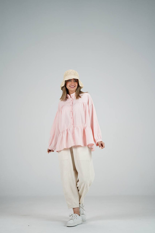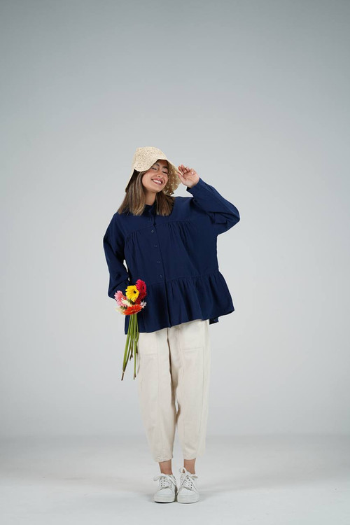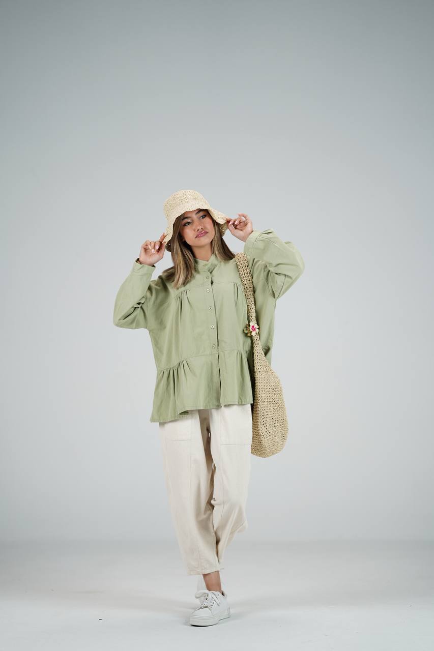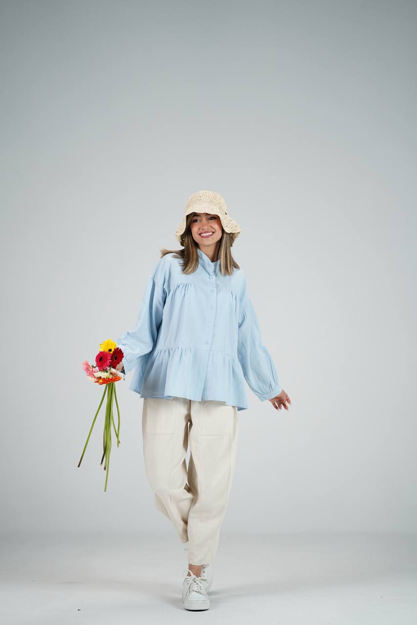 شومیز عروسکی در ۹ رنگ متفاوت که فری سایزه و جنسش لینن هست ولی لینن وارداتی که آبرفت نداره دوختش مزون دوزه که اینکار با شلوار و دامن قابل استفاده است